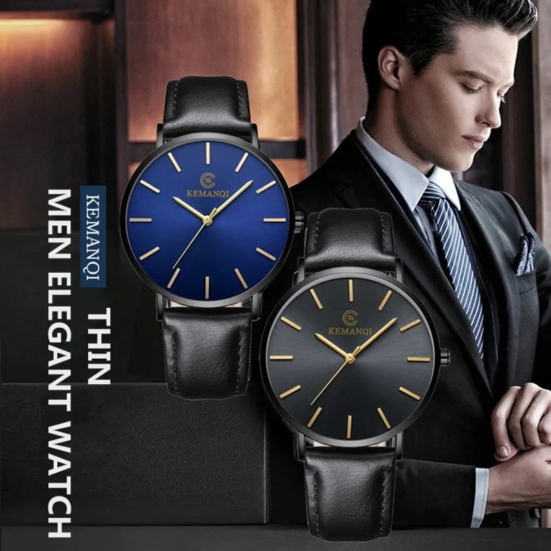Stijlvol Gouden Herenhorloge – Ultradun Quartz met Leren Band