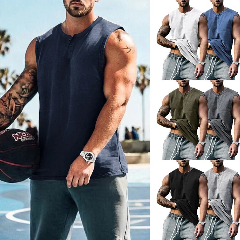 Wees de eerste om “Heren Henry Kraag Vest Zomer Heren Casual Tank-Top Sport Mouwloze Top Katoenen Fitness Bloemenprint Effen Kleur Heren Kleding” te beoordelen