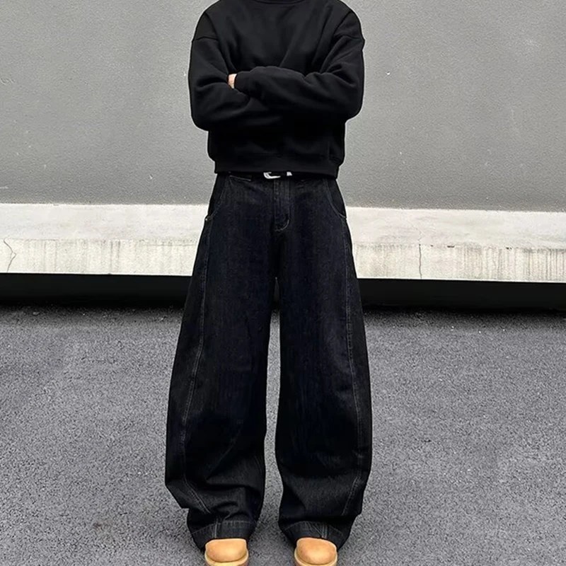 Koreaanse Retro Heren Jeans Herfst Mode Rechte Pijpen Broek Baggy Broek Casual Zwarte Jeans Uitlopende Jeans